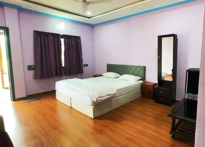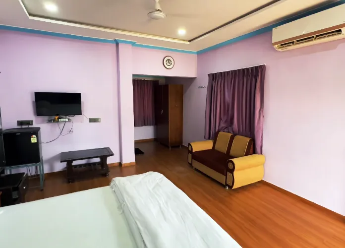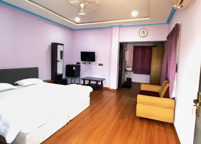 The Deluxe room of Vrundavan Resort Provides King Bed, Television, Free Wi-fi, Air Conditioner, Private Bathroom, Tea & Coffee Maker, Hand Sanitizer etc.